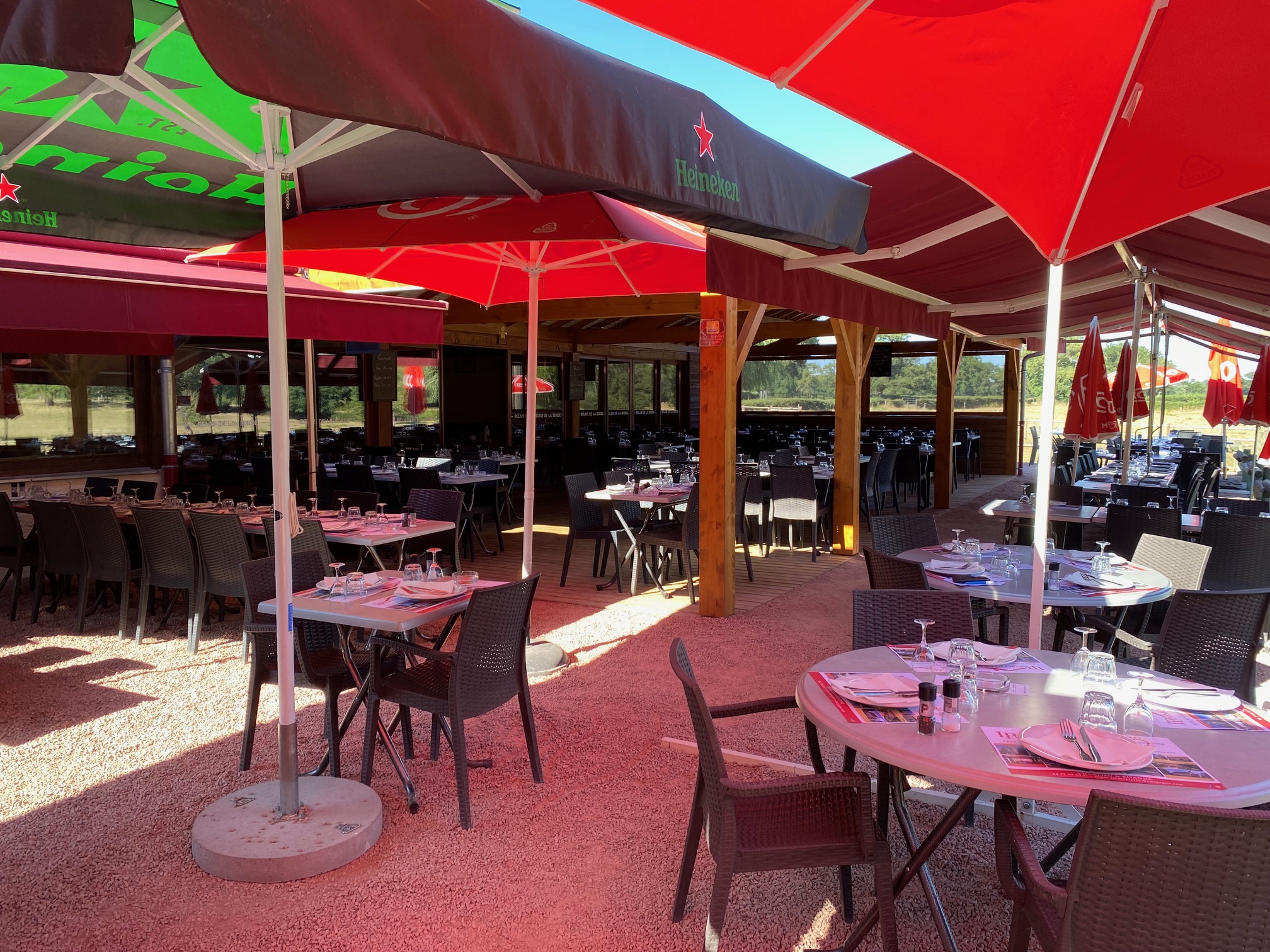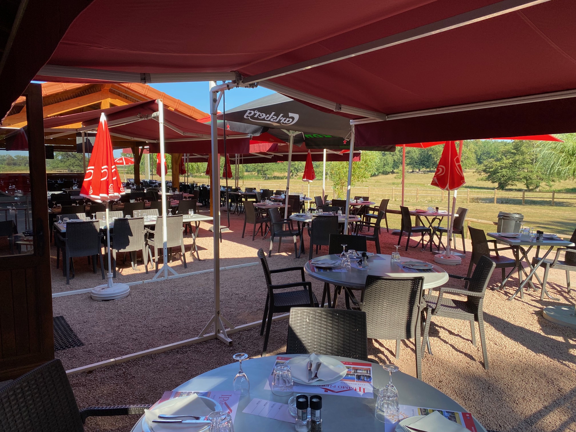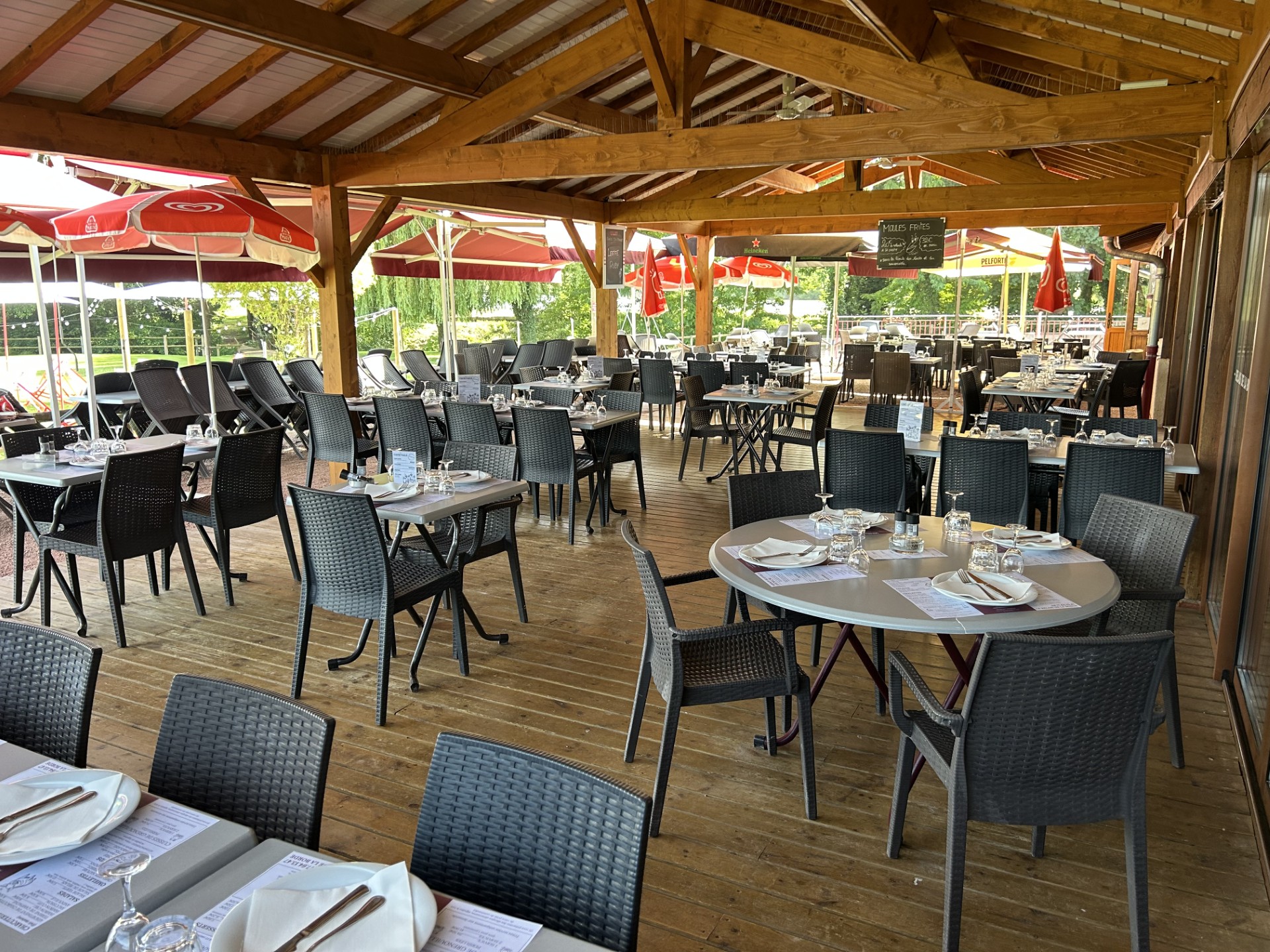 Dans un cadre idyllique pour tous les amoureux de verdure, au bord d’un étang de 6 hectares, vous profiterez du calme de la campagne autour d’un repas ou d’un verre sur une terrasse ombragée, donnant sur un grand terrain de pétanque ainsi qu’une aire de jeux pour les enfants.